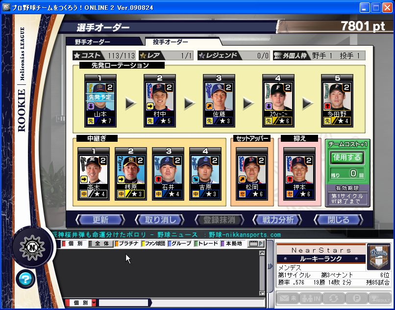 載せないと鋼虎さんに怒られるので載せます!!!2日前のデータなんで今は若干変わってますが・・・投手ボックス出てたのにぽいんとなくて買えなかったぜ泣 野手撮り忘れて次の日撮ったやつだなこれ 体調悪い選手入れ換えるのわすれててすげー負けたw まぁ・・今の所5位です! 1位を狙いたいがw まだ厳しそうですな・・・