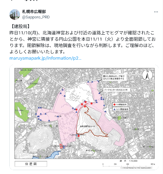 「円山動物園敷地内や北海道神宮近辺で熊の目撃情報や足跡などが見つかって円山公園が全面封鎖となりましたね」