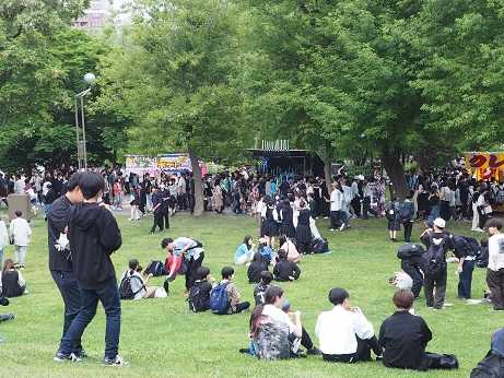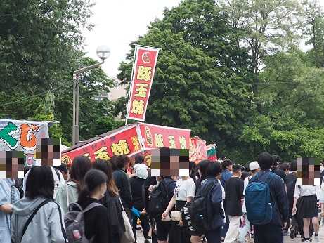 「そうだね。中島公園入口からの本線を通ったら激混みで遅々として進まず、アトラクション待ちの行列状態で周りの人に触れそうになったからねぇ。カメラを持っている人はほとんどいないし」
