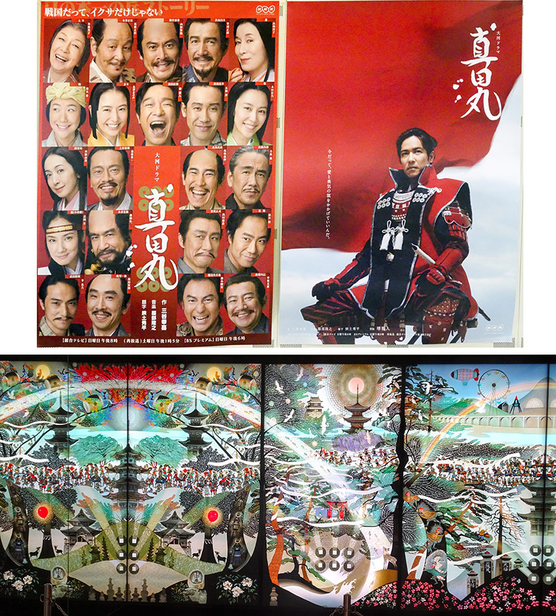 小中学校の同級会があり、戸倉上山田温泉に行ってきた。新幹線が上田の直前で急停車し、理由はわからないが6分後に発車し、何事もなく上田に到着したが、接続のしなの鉄道戸倉行に乗り遅れた。上田駅はどこもかしこも真田一色で、観光客も増えているが、一年後のドラマ完結時の反動が怖いとタクシーの運転手が言っていた。故郷や東京の古い仲間と会い、酒を呑み、ああだこうだとぐだぐだ思い出話に耽るのも楽しいものだが、こんな話は以前はつまらなかったのに、吾老いたりの感一入だ。 上田駅で見つけたポスター2点 下の絵は上田の現在と歴史に関する大絵巻ポスターのようだ