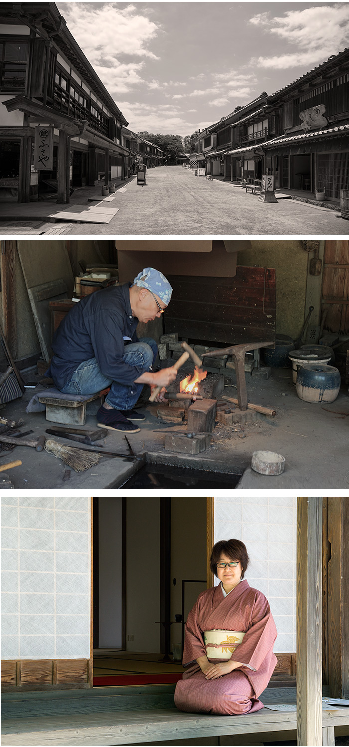 成田市の北西、印旛沼に近く千葉県立「房総のむら」という博物館がある。館といっても、資料館の他に江戸時代の町並みや武家屋敷、農村などを再現し、隣接する風土記の丘と共に広大な緑地を擁する博物館だ。印旛沼と利根川に挟まれたこの地には、弥生時代からの住居跡も見られ、古墳が多数散在している。最近ここを訪れ、昔の町並みと資料館を見学して撮影し、林の中を散策してきた。昔風の鍛冶屋があり、鉄材の加工をして見せるが、火床の炎が一定なので鞴ではないのかと聞いたら、電動ブロワーと鞴が備えてあり、ふだんは鞴ではなくブロワーで吹かしているとのことだった。武家屋敷には茶室があり茶人がいたが、暇なので裾をたくし上げ屋敷の畑を手伝っていた。お茶を一服いかがですかと言われたが断ったのに、茶室の写真を撮るときには茶人も一緒に入ってもらった。 房総のむらで