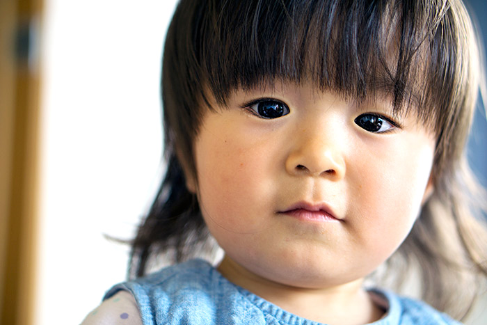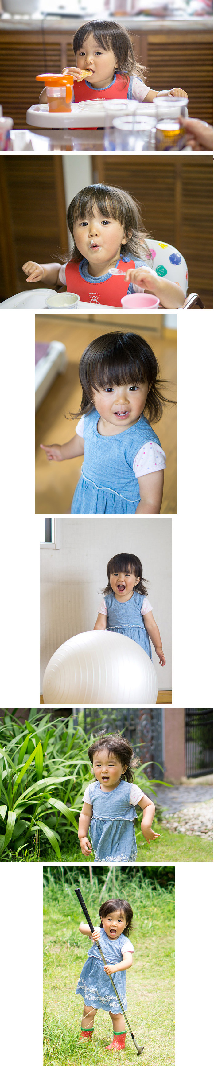 1歳8か月を超えたChikako、5か月前の人見知りもなくなった。最初はちょっと警戒心の見える写真だが、そのうちに元気に遊び出し客の人気者だ。Kasumiお姉ちゃんに懐いて一緒に遊び、カメラにも物怖じしなくなり、キッズモデルとして期待できそうだ。 Chikako-1