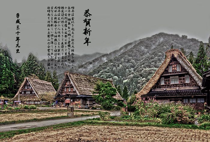 昨年は金沢を起点に秋の北陸路を旅しました永平寺 輪島 白川郷と愛機を肩に歩き回りました11月に毎年1回は罹る風邪に早々と冒されました肺炎を恐れて診てもらうと危うく発症寸前だと言われました昨年は旧友が二人他界しまた賀状の枚数が少なくなりました12月初に成田山新勝寺でお神籤を引いたら旅は吉と出ました吉とあらばまた新しい旅を探して出かけたいと思いました秋時雨のそぼ降る五箇山菅沼の合掌造りの写真はどうでしたか年賀状では細かな印字なので、見難かったでしょうとここに再記しました。賀状の写真には不満があったので、モニターでもう一度見てもらいたいと思いました。加工修整がしてあります。 今年もよろしくお願いします平成30年初頭