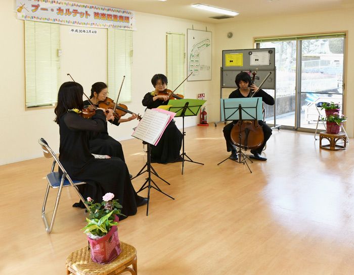 街の老人会企画のコンサートが今年も催された。今回は弦楽四重奏で、クラシック、ディズニーソング、映画ミュージック、日本唱歌などと多岐にわたり、みんなで歌う場面もあった。私の役目はポスターとプログラムの作製。ポスターA4は配布枚数が多いのでネット印刷に発注し、A3は10枚前後なので自家印刷し、屋外分は仲間の家でラミネート加工する。ポスター効果か、勧誘効果か来場者数は81名となかなかの盛況だったし、終了後の評判もよろしかった。来場者が100名を超えると街の集会所での開催が難しくなる、と来年の心配をする始末だ。毎年趣向を変えてきたが、さて次回はどんなコンサートをやるかは役員のピアノの先生が考えてくれるのだが。 私は時にはゴスペルでもやれば老人が元気になるのではないだろうか、と思うのだが。 弦楽四重奏’プー・カルテット’