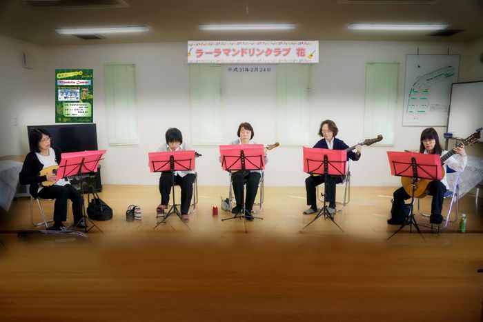 今年で6回目を迎えた老人会主催の音楽会が好評裡に終わった。ふだんなかなか聞けない生のコンサートを街の住民に堪能してもらおうと老人会で企画しているものだ。今までに弦楽四重奏を2回と、マンドリン5重奏を2回、そしてジャズコーラス、南米フォルクローレを1回づつ催した。来年はゴスペルを聞こうかと考えている。街の集会所で開くのだが、近隣からも集まり、だいたいいつも80人前後が集まる。このうち男性が20名弱で、集まりが悪いのはいつものことだ。老人会の役員にピアノの先生がおり会のコンサートを導き、また役員には音楽好きが多く、コンサートに行ったりカラオケに行ったりしている。私はパソコンと写真を買われ、ポスターやプログラムの作成と記録写真の係だ。今老人会はどこでも役員のなり手が少なくて困っている。当老人会は今のところ必要な役員が揃っていて会はうまく回っているが、だんだん老化が進み、病人も多くなり、近いうちに若手の導入を急がないと行き詰ってしまうかもしれない、と危惧している。 ラーラマンドリンクラブ花