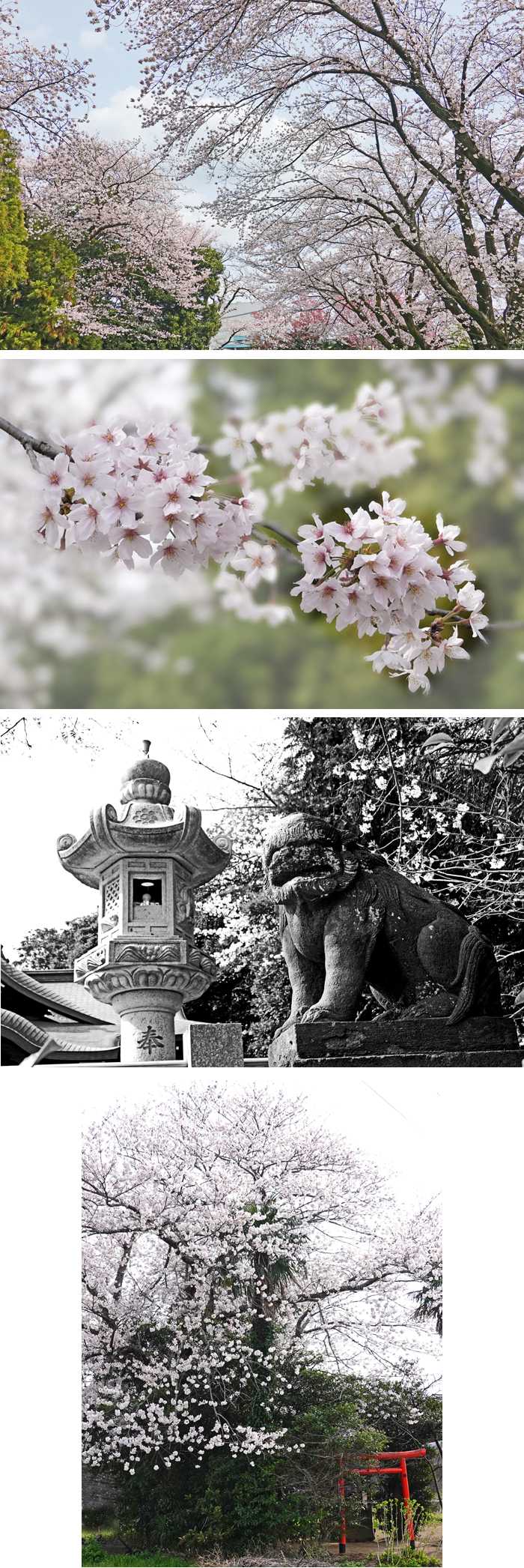 今年は、毎年桜撮りに行っている近くの神社へは行かず仕舞いで終わりだろう、と思っていたら、今日も午前中は晴れ間ありとのお告げで急いで朝飯を終え出かけてきた。と言っても既に10時半を過ぎていた。毎年1月2日に初詣し、3月末に桜撮りにだけ来る神社だが、お参りしお賽銭だけは投じてくる。今年は境内の桜が以前より少ないなと思ったら、なぜか伐採されていた。それでも付属する駐車場の桜は見事に咲き誇っていた。4枚目は帰りがけに撮った道端にある祠を覆う桜で、梅雨時になるとアジサイが周囲を青く染める。祠にはお酒が1本供えられていた。 神社の桜