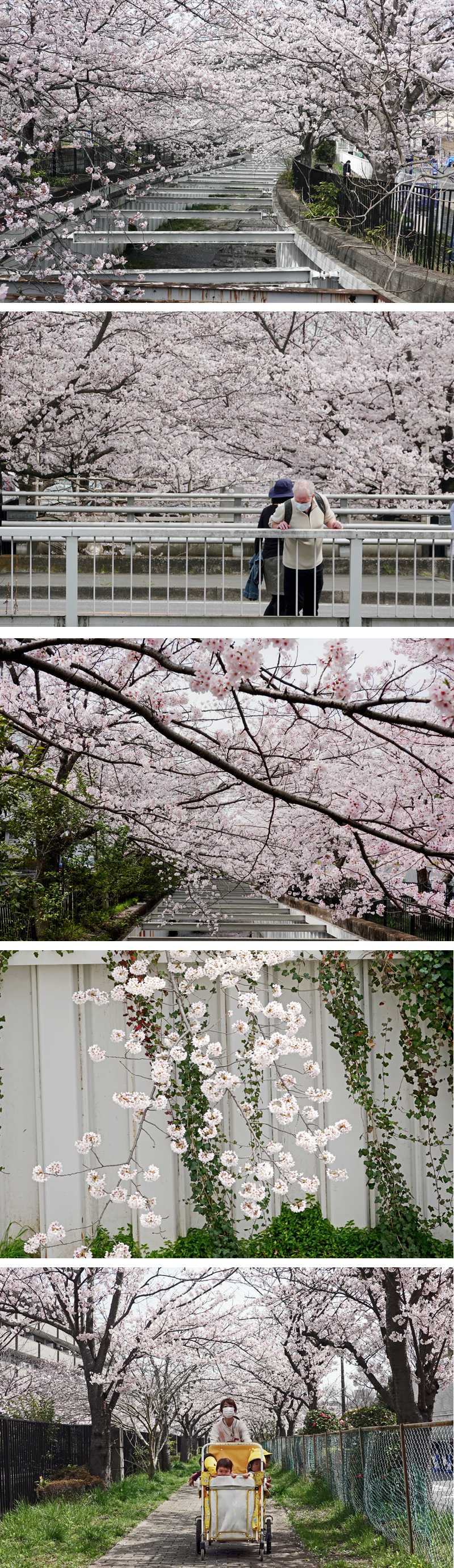 今日は午前中は薄曇りとの予報を信じ、バスで15分ぐらいの、運河の桜並木へ。予報通り薄曇り、ときどき青空が見られる好天だった。今日を逃したらもう今年は終わりと、私と同じ気持ちの多くの人が花見に来ていた。 この小さい川は運河らしいが、河川名は不明、源流は不明、川下は東京湾に注いでいる。と言っても通常は僅かな流水で、下流に行くに従って水量が多くなっている。どうも住宅の排水が集まってきているように見受けられる。と言っても汚水ではないようだ。 この両岸に見事な桜並木が続いている。両岸を護る矢板を支える桁が邪魔だが、土手の崩壊を防ぐためだろう延々と続いている。それがなく、もっと流水があれば、もっと見応えがあり写真写りもいいのだが、それでも小目黒川かの景観を見せている。 近くに屯田があり、幸楽苑があるので昼飯に寄ろうかと思ったが、花見客たちか、混んでいたので諦めて帰宅した。 運河の桜並木