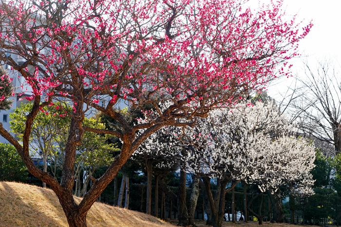 締め切り迫る確定申告を4日前3月14日に何とか間に合わせた。今回はスマホ連携のパソコンでの申告に挑戦した。多くの人が利用している申告方法だが、保険関係をスマホで証明書獲得するのに難儀し、申告が遅れてしまった。還付金も僅かながら得られたし、何より来年から申告手続きが楽になると期待している。別にパソコンやスマホを使わず手書き申告でもいいのだが、頭の体操と思ってe-Taxの申請に取り組んでいたのだ。政府が巨額を投じて立ち上げたマイナンバーカードシステムだが、今でも評判が悪い。マイナカードを撤退する人も増えているらしい。私は常時マイナカードを持ち歩き、利用度の多い病院でも何ら問題なく使用している。多分この制度は無くならないだろうから慣れておく必要があると信じている。また社会的にもスマホ利用は増える一方だろう。今回のスマホ利用のe-Taxでは、何回無駄にマイナカードでマイナポータルに入ったことだろう。老人会では、パソコンとかスマホに通じていると思われているようだが、実はそうでもないことを自分が一番よく知っている。そして今回、e-Taxの処理で自分でも嫌になるほどもたもたしていることで、脳と指先の劣化が更に進んでいると思い知った。さて来年は定額減税がなくなれば還付金はなくなるのだろうか。 2本の梅の競演