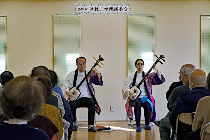 毎年恒例の老人会企画によるコンサートが終わった。今回で10回目となる節目のコンサートであり、初めて邦楽の津軽三味線演奏が催された。男女2人の演奏で、各地民謡18曲を2時間の熱演だった。 テレビなどで見かけたことはあったが、実演は初めてだった。そこで予めYoutubeで全国大会優勝組などの演奏を見て、その超絶技巧ぶりがヴァイオリンやギターにも劣らない演奏であることに感じいっていた。 大会優勝者などと比べると、今回の演奏はそこまではいかないが、それでも演奏を目の前で見るとその技巧と音色に圧倒されるものがあり、速弾きで聴衆が惹きつけられ拍手を得る場面が何回もあった。また、二人羽織などの変則的な演奏も演じて見せてくれた。 ついでにWiqipediaで三味線について調べる。その起源は中東にあり、インド、中国を経て日本に伝わり、次第に現在の形となり、江戸時代に当時最北端の津軽にて門付け芸に津軽三味線の原型があることを知る。更に三味線の材料がスリランカ産の木材、絹糸、犬や猫の皮、象牙、黒檀など、また撥には鼈甲が使われるが、象牙や鼈甲などは動物保護から入手が困難となり、プラスチックなどの代替品が利用されるようになっている。それでも高級品は音色に勝る従来材料が使われているようだ。密輸品なのだろうか。 津軽三味線演奏会