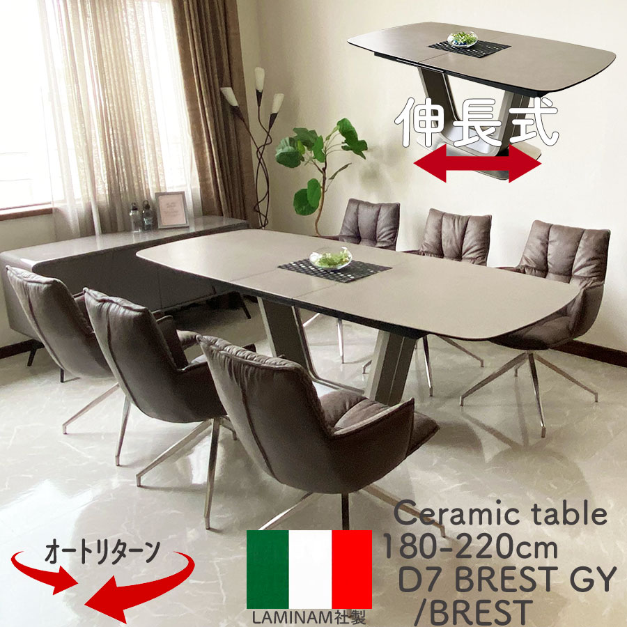 ⭐️お薦め情報⭐️【24時間限定10%off】【開梱設置無料】 ダイニングセット 7点 伸縮 180-220cm 6人用 伸長式 セラミックテーブル イタリアンセラミックトップ 180度回転チェア ブレストGY/ブレスト【RCP】