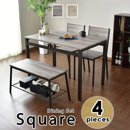 ⭐️お薦め⭐️【クーポン15%OFF 3/1 0時~24時】 ダイニングテーブルセット 4人掛け ダイニングテーブル ベンチ ダイニングテーブル4点セット テーブル 幅110cm ダイニング4点セット テーブル チェア ベンチ セット 食卓 北欧 おしゃれ スクエア4点 送料無料