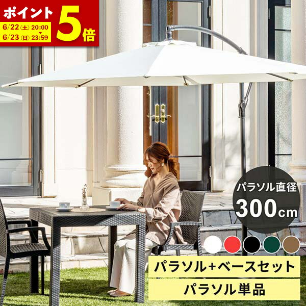 【ポイント5倍★6/22 20:00~6/23 23:59】パラソル ガーデンパラソル 300cm パラソルスタンドセット 単品 UVカット 黒 uv 99.9%カット 大型 ハンギングパラソル 自立 パラソル+ベース 大きめ 遮光 雨ざらし 庭 テラス バルコニー ホワイト ブラック