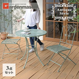 ⭐️お薦め情報⭐️アンティーク調 ガーデン3点セット テーブル&チェア <br>PAGS-3(GR) アンティークグリーン <br>テーブルセット ガーデンファニチャーセット ガーデンテーブル ガーデンチェア グリーン おしゃれ <br><br>山善 YAMAZEN ガーデンマスター <br> 【送料無料】