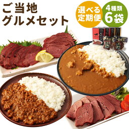 ⭐️お薦め⭐️【ふるさと納税】【選べる定期便】ご当地グルメ! 馬刺し燻製2種と馬スジ・あか牛カレーのセット 4種 6袋セット 3ヶ月定期便/6ヶ月定期便/12ヶ月定期便 食べ比べ カレー 馬刺し燻製 おつまみ 馬肉 冷蔵 九州 熊本県 人吉市 送料無料