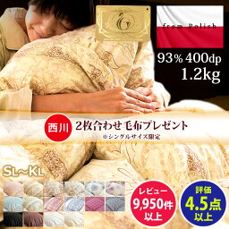 ⭐️お薦め⭐️★西川の毛布プレゼント(羽毛布団シングルサイズのみ対象)★レビュー9,700件以上★羽毛布団 ポーランド産 ダウン93%【7年保証】ロイヤルゴールドラベル ダウンパワー400dp以上 日本製 国産 冬 シングル セミダブル ダブル クイーン キング 本掛け 羽毛ふとん ロング