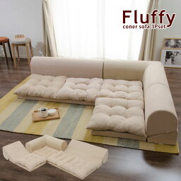 ⭐️お薦め⭐️和楽日本製コーナー3点ローソファーセット フロアソファ 座椅子 コタツソファーFluffy フラッフィーks