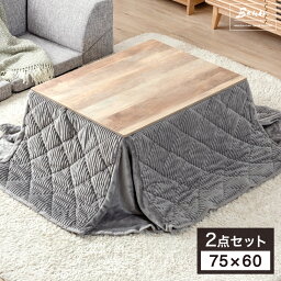 ⭐️お薦め⭐️こたつ 2点セット 長方形 75×60 こたつテーブル + コーデュロイ 掛布団 コタツ 炬燵 火燵 テーブル リビングこたつ こたつ布団 こたつセット コンパクト 一人暮らし モダン 北欧 おしゃれ 石目調 ヴィンテージ 一人用こたつ