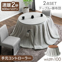 ⭐️お薦め⭐️【新発売プライス&本日クーポン5%引】速暖2秒 600Wハロゲン 円形 ダイニングこたつ 掛布団 2点セット 4人掛け 幅100cm こたつ テーブル リバーシブル ハイタイプ 2点 こたつセット 高脚こたつ ハイタイプこたつ 円形こたつ 丸 おしゃれ 【超大型】
