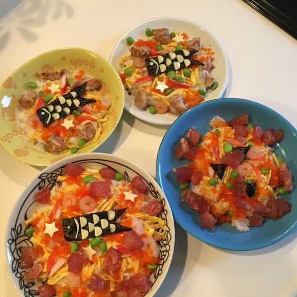 鯉のぼりに🎏見えるかしら??? 昨日からこどもらは主人の実家にお泊りでした こどもらいないとすることない! っていうか、する気にならないのはなぜだろう スイッチオフ状態でだらーんとしてしまいました で、ふと今日がこどもの日であることを思い出して買い出しへ ちらし寿司にしました 巻き寿司より食べやすくて喜ぶので 大きい子供(主人)にも鯉のぼり(笑) 刺身もそろそろ。。。と思いつつ 小心者の私は子供の刺身は焼いてしまいます。。。 少なくとも長男はいけるはずと思うけど。。。 日記・雑談ランキング にほんブログ村