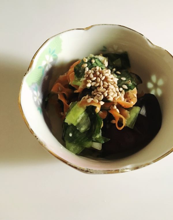 先日の浅漬けが簡単に美味しくできて あっという間に食べてしまったのでまた作りました 今度はちょっと作る量を増量 飽きるまでしばらく作り続けそうです(笑) 今回は人参半分、ナス中1本、キャベツ2枚 レタスの外側の硬いやつ2枚 人参はピーラーで細長くスライスしました 前回包丁で千切りにしたら面倒だったので ま、手間はどっちもどっちか。 ナスは半分にきって5ミリぐらいに切って キャベツとレタスは適当に1センチ角程度に ざくざく切って ザルにまとめて掘り込んで、塩(5gぐらい)で もみもみしてしばらく置いて しんなりさせて水を出す しばらく置いたら水気を適当にぎゅっぎゅと 手で絞ってジップロック的な密封袋に入れて 和風だしの元を適当にぺぺーっと入れて(5g弱) 練りわさびをにゅーにゅーっと2センチ*4回ぐらい入れて 後は袋の上からもみもみよく混ぜ混ぜして 袋の端っこに野菜を寄せてぐるぐるっと袋を巻いて 冷蔵庫へ放り込んで置く ご飯よそったり、おかずあっためなおしたり お酒作ったりと食卓準備している間に完成ですわ 器に盛ってゴマかけて完成 1日おくとわさびの辛味が飛んで食べやすい 我が家は味噌汁で野菜摂取してたのですが 連日暑くて味噌汁を作る気も食べる気も起きないので 野菜不足を補いたいと考えた結果の浅漬け (サラダもマンネリで飽きたし。。。) 子供らにはわさびが辛いかなとも思ったのですが 長男はご飯に混ぜてちりめんジャコや納豆も混ぜると 辛味がごまかされるし、苦手な納豆のにおいも軽減されるのか おいしい言うて食べてます 次男は元々野菜嫌いなのでわさびがあろうがなかろうが 好んでは食べませんが、これは味噌汁のときと変わらないので ま、サラダ同様なんとかかんとかだましだまし 食べさせて野菜をとらせたいと思うこのごろ。。。 私はほんとはぬか漬けが食べたい でも管理する自信がない。。。 日記・雑談ランキング にほんブログ村