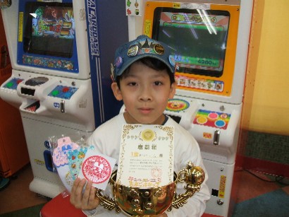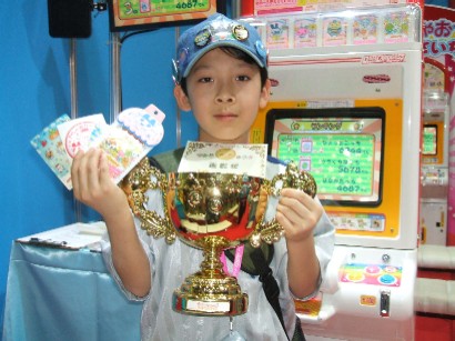 WHFの2日目,とうとう本番の日がやってきました。たまごっちの大会に出るようになって,何度か優勝をしてきたわけですが,ある意味その集大成となるこの日の大会,何としてもMVPを取りたいところです。朝は会場1時間半前に行きました。当然すでに長蛇の列ができていて,寒いなか外で待たされる覚悟はあったのですが,長蛇の列はできていたものの,会場の幕張メッセのなかで待機することができました。ちゃおカップに出る人は,早朝集合の1回目の参加者と,次の2回目に出る参加者は,一般入場とは別の,当選者入口に並んで会場入りできたのですが,うちは午後の一発目の大会で,3回目なので一般入場のところに並ぶことになりました。30分くらい早く開場するかと思ってましたが,キッカリ9時に開場となりました。開場から20分くらいたったころ,うちの入場ということになりました。私はちゃおカップのブースに。息子は当然恐竜キングのブースへ(^^;)。朝一番の大会がすでに始まっていて,8人ずつ筐体の前にいて,大会の説明を受けているところでした。肝心の競技は・・・と見てみると,なんと「クイズ」と「たまのり」になっていました。やりにくい「かけっこ」が無くなっていて,得意と言えば得意の「クイズ」,そして得意中の得意「たまのり」になったことは「追い風」だと感じました。観戦中に,同じ3回目の大会に出るパパリッキーさんとお会いして,同じような感想を仰ってました。またIMTから3回目の大会に3人,4回目の大会に1人の子が参加するのですが,会長さんや未勝利さん,そしてM師範さんとも会い,対策を練りました。参加者の様子は,やはり上手い下手が「たまのり」に出ています。クイズはある程度得点を取ることができるため,結局どのシークレットを使ったとしても,「たまのり」の出来で勝負が決まっていました。1回目の大会が終わり,2回目の大会も無事終わって,3回目の大会が近づきました。補欠に関しては,毎回6人から10人くらい欠席がいるようなので,もしかしたら私にも参加のチャンスが?って思ってました(^^;)。さて!ついに集合時間の12時半になり,当選者が並び始めました。息子と,パパリッキーさんの息子さんのリキヤ君,そしてIMTのタカシ君,ユカちゃん,ユミちゃんの5人はなんとしてもバラバラの台になってくれないと,と思ってましたが,昨日から今日にかけて,台を割り振るところを見てましたので,事前に立てた対策どおり5人を並ばせ,見事に5人が重なることなく別々の台で参加することになりました(^^)。Aにはユカちゃん,Bにユミちゃん,Dは息子コウキで,Eはリキヤ君,そしてFがタカシ君です。並んだ位置が前の方だったため,全員2組目ということになりました。Fにはいつも地元の大会で優勝を争う子が同じく札幌から来ていて参加していました。同じ北海道代表ということで,頑張ってほしいところです。さてさて,補欠当選の行方はというと,この大会ではなんと「4人」しか補欠が出ず,11人くらいいた補欠のなかから抽選となりました。子供に混じって,私と未勝利さんが並んでいたわけですが,まずじはじめに呼ばれたのは・・・未勝利さん!良かったと思い,「おめ・・・」って言おうとしたら,未勝利さん,もう台の前にすっ飛んでいきました(爆)。しかも誰もいないCブロックに入り,思う存分暴れることが出来るいいところになりました。残り3人・・・結局私の名前は呼ばれず,これで私のMVPの夢は潰えました(涙)。説明が終わり,いよいよ大会開始です。息子のグループの1組目,やはり「たまのり」で苦労していて,そんなに点数が伸びず。ついに息子の番がやってきました。使用ごっちは事前に「ひょっとこ」に決めていました。観戦者も多く,私は前で見ることができませんでしたが,かろうじて息子の顔が見え,「あ・わ・て・る・な」と,口パクで伝えるのが精一杯でした(^^;)。まずは「クイズ」。過去函館遠征の際,「赤」に反応して「提灯」と「番傘」を間違えたことのある息子。早押しはしなくていいからまずは全問正解を目指して欲しいと祈る・・・。やはり緊張のせいか,若干遅いとはいうものの,全問正解ができ(ホッと安心 ^^;),3100点ほど出せました。次は「たまのり」。これは息子は自信があるだけに,今日もグラつかず,満足の出来で,3200点くらい出し,合計で6344点。振り返った息子の表情には,「やったぞ!」という興奮が表れていました(笑)。私も目で「よくやった!」と返しました。昨日から観戦していて,6000点いけばほぼ間違いなく優勝しているので,行けるかなとは思ってました。3組目・・・4組目・・・「たまのり」で皆グラっときていました。結局,誰も息子の点数は超えられませんでした・・・。ということで!21回目の優勝は,ちゃおカップごっちー会場での優勝でした!ごっちー会場ですから,手にしているカップがもらえます(^^)。さて,他の参加者ですが,リキヤ君も持ち前の実力を発揮して,6371点で見事優勝でした。IMTの子供達は,やはり「たまのり」で苦労して,惜しくも優勝を逃しました。ひとり補欠から参加