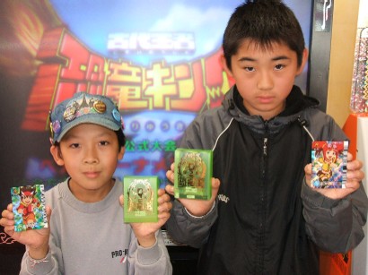 先月末から恐竜キングも新優勝カードになってますが,先週末はニセコ一泊旅行に行ったため出遅れたことから,今週が初めての大会挑戦となりました。まず朝は子供戦。初戦,最後の一手勝負・・・まあデスも発動していましたが,負けて終わりました。続く家族ペア戦。初戦,先発の息子,相手のちっちゃい子にショックまけるも,勝負して負ける始末・・・。ちっちゃい子には普通にあいこ狙いで,あわよくばの勝ちを頂くというのが鉄則だろうに・・・。結局,大将戦になりましたが,あいこでも終わる体力同士で,相手にあいこバクダン2個ついてるので,あいこでも勝つのかなと思ってましたが,最後あいこで,遅押しになってしまったということで私が負けました。バクダン破裂の前に「あいこ判定」が来るので,相手にバクダンがあろうが,やっぱり早く押したほうが勝つんですね(^^;)。場所を変えて無制限ペア戦。いきなり息子のペアと嫁さんのペアが激突。ここは息子ペアの勝ち。ですがその息子ペアも次でダメダメの敗戦。私のペア,初戦は相棒パパさんが1頭勝ちをしてくれましたが,2回戦では2人してダメダメで,大将の私は相手大将が出てきて,必殺一発で負けました・・・。この時点で恐竜大会はこの日は終わり。ああ・・・取れなかった・・・。朝の会場に戻ってムシ大会。320タッグでしたが,息子,初戦は取るも,2回戦で負けました。嫁さんは初戦敗退。私,当初は抽選漏れかと思いましたが,現場にいないパパさんが抽選に当たっていることが判明して,私出られることに。で,戦ってましたが,1匹倒れそうになって,「まあ2匹目のマンディで勝負するか」と考えていましたが,1匹目のカブトムシが倒れた時点で相手パパさんがニヤニヤしている・・・。あっ!1匹死んだら終わりだったんだ!すっかりタッグマッチのルールを忘れていました(開幕試合だったし・・・ ^^;)。ランダム3人戦も,見せ場は嫁さんトリオで,2回戦で嫁さんが1人勝ちをしたということだけで,私と息子が一緒になってしまったトリオは2回戦敗退でした。結局,ムシでも優勝できず・・・でも取った取った・・・のはUFOキャッチャーのお菓子(笑)。300円くらいの詰め物を200円くらいで取りまくり,2週間はおやつを買わなくてもいいくらい取りました(^^)。もう優勝できなかった腹いせに取りまくりました。頭文字はなんか気合も空回りでA3に落ちてしまいました。明日はいいことがあるかな・・・。
