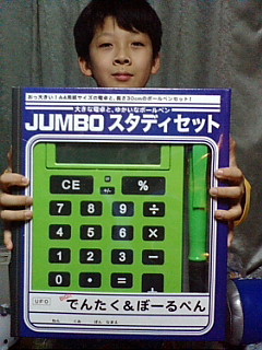 所用があり,午後から有給休暇をとった私,ひとつ前の記事のお買い上げ品を家に持ち帰り,息子が学校から帰ってくるのを待ちました。そして帰ってくるなり,車に飛び乗って,向うは・・・平日ビンゴ大会(^^)。米当てるぞ~という意気込みで,さあビンゴ開始。なんとはじめの数字5個くらい読み上げた時点でリーチが。来るか?来るか?なんて思っていると,どこかの子が「ビンゴ!」で,くじを引いて当たったのが・・・「米」OTLいきなりかよ・・・ってことでテンションダウン(笑)。ビンゴは続く・・・途中一気に6人のビンゴ者が出て,平日だから10個の賞品は残り2個になりました。次の数字で終わりだな・・・次の数字・・・14!ビ,ビ,ビンゴォォ!小走りに前に出て行くと,もう一人ビンゴ者がいて,そこで打ち止め。ジャンケンでは私また負けて,またまたくじを引くことなく,賞品が自動的に残り物に。その賞品は・・・一応息子が欲しがった・・・電卓です。思い切り電卓を前につき出して写真を撮りました・・・じゃなく,これくらいビッグな電卓です(笑)。ともあれ何でもいいけど当たってくれて何よりです。さて,このあとは平日恐竜大会。ランダムで相棒が決まります。私のペア,初戦は私の出番なし。2回戦は嫁さんのペアとでしたが,ここも私の出番はありませんでした。チェンジに気をつけろと嫁さんに言ってましたが,アクア発動後はチョキあいこでもチェンジするってことまで気がまわらなかった嫁さんが,見事にチェンジを食らったのが敗因でしょう。準決勝,今度は息子のペアとでしたが,こちらの先発が,息子を3手で倒します。その後,ようやく私の出番がありましたが,体力を減らしてチェンジが光ってから勝負かなと思っていたら,本当に体力をどんどん削られ,ついに最後の早押し勝負になりました。ここは一瞬早く押した私,あいこでも最後にこっちの体力がピョコッと残りました(^^;)。決勝,先発が一気に追い込まれますが,巻き返し,最後の一手勝負になりますが,惜しくも負けて先ダウン。私が出て行って,相手はアタックアップ十分のパキケ,私はこうげきティラノ+パウパウ+チェンジ+ボルケーノ。このパキケを倒せば,相手大将はカルノに超ワザマックスだし(タッグマッチだから事前に分かってます),勝ちは十分ありえる・・・。でもアタックアップしてるし,こっちはパキケに2手で負ける・・・ここで一気に勝負をつけなければ・・・。エイ!負け必殺パーだ!光るパキケ・・・いつの間にかレッドの私・・・パキケの必殺を食らって・・・一発昇天!いきなりチェンジ食らって終わり,準優勝でした(笑)。焦った私も悪いけど,勝ち竜で,しかもチェンジが光っててグー出さない相手ママさんも悪い!(爆)いやいや,おめでとうございました(^^)。なんでだろー,なんでだろー♪とその出し手を考えながら車を運転し,向うは近所のジャスコへ。思い出してしまった「アニマルカイザー」のキャンペーンカード第2弾だけもらうつもりで行きました。どうせ子供が並んでいるんだろうし,できないし,もうアニマルはやらないって決めたんだし・・・あれ?いない・・・。しゃーねーなー・・・ワンレアだけな,と息子に伝達。すると・・・アフリカゾウが好き!って感じで,新銀レアが出てきました。なんか・・・どこかでゴングが鳴ったような気がしたんですが・・・気がつくと閉店まで筐体の前にへばりついていました(^^;)。結局トラは出てきませんでしたが,他の新カードはほぼ揃いました。ダメです,止められません(笑)。こうなったらトラを出さないと気が済みません!その脇に,「大怪獣バトル」の拡張ファイリングシートvol.3があったので,それもゲット。200円で全8種はつらいですね。ストレートに揃うからまだいいけど,1600円はつらいなあ。カードが2枚ついているからしゃーないけど(笑)。さてと,明日も連コ頑張ろうっと!(爆)
