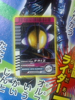 今夜は遊びに行こうと思ったのですが,お笑い芸人の歌合戦が見たいということで息子にあっさり却下されました(^^;)。3枚目の冒険の書「おあそび」(そういう名前です ^^;)で遊べる日は来るのか・・・。それでもWHFのおみやげを送るのに郵便局だけには付き合ってもらい,発送を完了いたしました。しかし,だんだんと付き合いが悪くなる息子だな・・・(--)。さて標題の件。WHFのガンバライドのところに展示してあり,博品館では実物を見てテンションがあがり,千歳空港から家に着くまでの間に購入したのは・・・ディケイドライバー!実際ガンバライドで使えるカードが10枚ついているってことでしたが,そのカード(らしきもの)を最初に見たのが「幼稚園2月号」(北米のたまごカードのために買った本)でした。その本に掲載されていた写真がコレ。ライダーの名前が英語で表記されていて実にカッコいい!それを見たとき,もう購入を決めていたと言っても過言じゃありません(^^;)。ですが!実際にディケイドライバーについていたカードはコレ・・・。名前がカタカナ表記になっていて,ライダーの仮面アップは変わらないものの,なんかフツーのカードになってました(^^;)。確かによく考えてみれば,幼稚園に載っていた写真のカードにはガンバライドに使われるパラメーター表記がないわけですから,劇中で使われる小物としてのカードだったと言えなくもないです。それにおもちゃの対象年齢からすれば,ちっちゃい子は英語なんて読めないですからね・・・。カタカナになるのも止む無し?なんか騙された気がする私でした(^^;)。買う前によく見れば分かったんですけどね(笑)。コンプのために!と思って慌てて買いましたが,ちょっとテンションダウンです。そしてさらにテンションダウン?させるのが・・・やっぱり来たよ・・・。今後カードがソフビやら既出のライドブッカー(2月上旬発売),ポケットファイル(2月中旬発売),ファイナルフォームライドシリーズ(2月下旬発売)にもつくという。また,2月下旬発売のジャンボカードダスもあるし,大怪獣やプリキュアにもあったガシャポンのミニカード付きのフィギュアも今月下旬と来月に分けて出るらしい(1個200円)。どこまでやろうかなあ・・・(^^;)。数ヵ月後・・・息子がソッポ向くなか,ひとりで黙々とガンバライドで連コしている私の姿が頭に浮かびます(笑)。