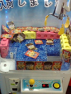 早いもので今年もあと・・・363日となりました!ついこの間「明けましておめでとう」なんて言ったのに(笑)。いやいや,冗談はともかく,年末年始の9連休も残り僅かとなりました。何するでもなく,大会に始まり大会に終わる・・・。昨年までと違うのは,ムシ・恐竜オンリーだったのが,ムシが終わり,ドラクエが加わったというところですね。今週末はドラクエ大会のみ。抽選に通ればいいのですが・・・。この日は嫁さんのリクエストにより,昨秋オープンした大型ショッピングセンターに行ってきましたが,大して見るべきところもなく・・・そもそもキッズカードゲームを置くようなゲームコーナーがなければ,私的には用はありません(笑)。さっさとショッピングセンターをあとにして,ゲームセンターへ。餅つき大会をやっていたので,つきたてのきな粉もちを食べることができました(^^)。さらにゲームセンターのハシゴということでイオンに行きましたが,ドラクエは4台とも埋まっていたので,1階にテナントとして入っているゲーセンに。そこでは2台のうち1台はフリーだったので,そこで私の冒険の書のレベル上げをすることに。当然赤目は出てきませんが,私の冒険の書の戦士レベルは30くらいなので,逆に白目がちょうどいいですね。息子がレベル上げをする筐体の横に,こんなものがありました。ミニキャッチャーに冒険の書が剥き出しで入れてありました。それをみっつの爪で上手く取るというものなのですが,薄っぺらい冒険の書を掴むのは至難のワザですね。ですが,至難であればあるほど燃える私のキャッチャー魂!息子の冒険の書もあと40回というところまで来ているし,次の冒険の書を買わなくちゃと思っていたこともあってチャレンジすることに。100円目・・・スルッ!200円目・・・すくった! ポロリ・・・。300円目・・・脇の台座に邪魔されて下まで降りず・・・400円目・・・超絶テクで落とし口にひとつの爪をひっかけて取ろうとするも失敗。500円目・・・買えばよかったという弱気が災いして失敗。結局,700円使っても1枚も取れませんでした。今日はこのくらいにしてやらあ!と,ミニキャッチャーを蹴飛ばしたい気持ちをグッとこらえて(笑),息子のレベル上げを見ていました。しばらく見ていましたが・・・なんか横のミニキャッチャーに嘲笑されているようで(^^;),再びチャレンジ。「かけた金額なんて問題じゃない!ゲットすることが大事なんだ!」というキャッチャーの格言を思い出し(誰の? 笑),100円を投入・・・失敗。200円目を投入・・・失敗・・・ですが!このとき思わぬビッグチャンスが!2種の柄の冒険の書が上下に重なったのです!1枚をすくいとるより,2枚重なっていれば,それだけ重くなるので,爪ですくったとき安定します。300円目を入れ,慎重に位置を合わせて,下降ボタンを押しました!すると!イェーイ!(^^)v冒険の書2枚取りに成功しました!かかった金額は総額1,000円で,チャラみたいなものですが,取ったということ・・・2枚いっぺんに取ったということで,私の征服感は満たされました(^^)。そして私の冒険の書のレベル上げも,戦士が30から40に上がったので,今日のミッションは終了です。あとは有意義な週末となるよう祈るばかりです(^^)。