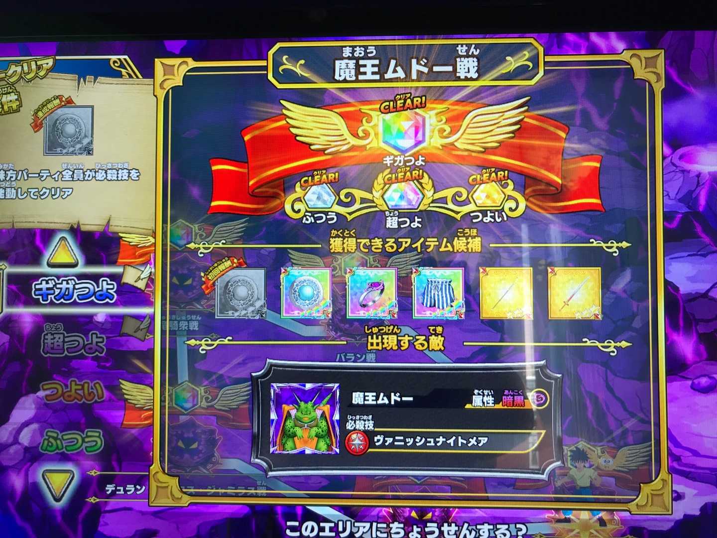 クロスブレイド 画面に新しい強敵ボスの告知なしです。 ダンジョンの新ステージ2つは私にとって既にMAXのアイテムばかり。 ムドー戦は? 報酬はまあまあいい感じかな。 ステテコは捨ててこ〜って感じで無視してたのでここで報酬になってくれて良かった。 みかがみの盾以外の装備もなく、今月はゆっくりランク上げが出来そう。 ムドー戦のスコアタは、やはりチャレンジ+メタスラに敵わない感じであきらめムード。 ムドー硬すぎです。