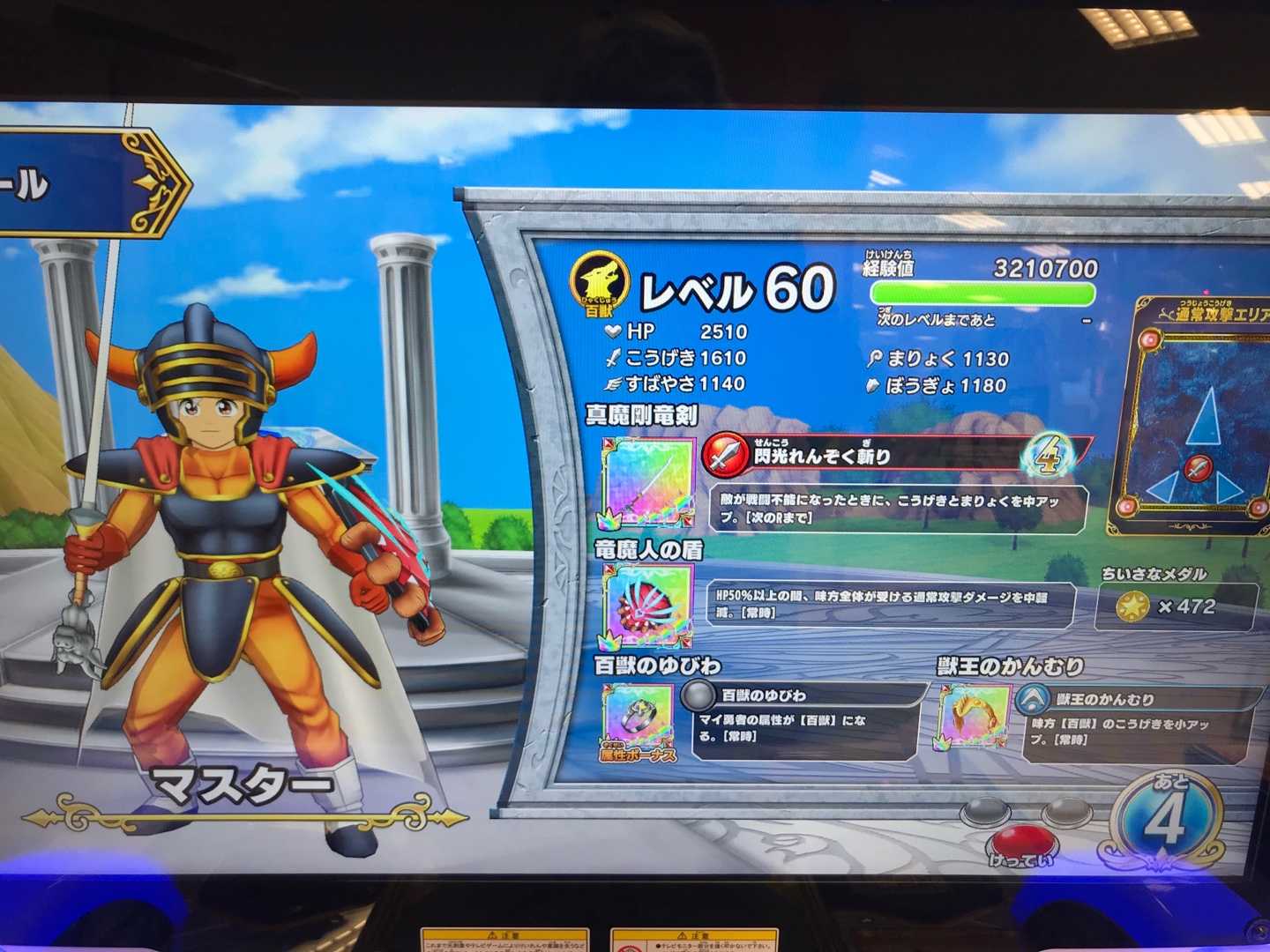 クロスブレイド100円で5階層進むことが出来るようですが、100階に行くためには20回プレイが必要ですね。そこに「ロトの盾」があるんですが、ここんとこ盾はランクMAXまで35回ドロップが必要だけど、そこは『伝説の装備』だけに、通常の70回ドロップが必要だとして、100階に70回行くのに・・・14万円!(笑)どうなりますやら・・・で、100円で5階層進むごと、どうやらMAXで5個の箱がゲット出来るみたい?いつものストーリーとかなら、2戦で相手が計6体なら箱はMAX6個(結界入れたら8個)ですから、確実に「渋く」なってるってことですね(この時点で運営のセコさが分かりますね 笑)。この画像を見てください。赤い矢印を付けましたが・・・これがダンジョンを進めてくうちに出て来るアイテムなんでしょうけど、もっともらしく虹色の箱に入ってますが・・・虹色装備はひとつだけで、あとは金色装備の盾が2つに銀色装備の武器が2つ・・・つまりはろくなアイテムが出て来ないってことですよ。その証拠に・・・白い矢印を付けましたが、4階攻略中ですけど、それまでの3階で出て来たのは茶箱2つに銀箱1つです。経験値とどうでもいい銀色アイテムがもらえるんでしょう。こんなふうに100階攻略すると、箱は100個ゲット出来るんですが、「鎧」「ロトのつるぎ」「ロトの盾」を除いた残り97個はどーしようもないアイテムがドロップするんでしょうね。たまにゴールドマンが出て来て虹箱がもらえるとしても・・・ラダトーム装備やアバンの書みたいな「目玉アイテム」はドロップするのかな?ま、いまの「勇者ラッシュチャレンジ」に毛の生えたようなものである気がするし、目玉は期待薄ですね。 あと、180秒で5階層ですから、1階層平均36秒となるわけですが、コンテしたらきっと30秒くらい制限時間が延長されるのでは?(もしかして丸々180秒延長かも?)そりゃそうですよね、運営は100円で5階層クリアなんて考えていなくて、やはりキッズには1階層あたり数百円かけて欲しいと思ってるでしょうし。 そしてスコアタ的にはどうなるんでしょうね。96階~100階を攻めたときが、やはり5戦あるわけですし、スコアはかなり伸びるのかな?でも、100階まで攻めて、それを冒険の書に刻んだら、きっと次はまた1階から攻めるハメになるでしょうから、何度も繰り返し96階からプレイしたいなら・・・100階を攻め終わったあとに冒険の書をはずすことが必要になるわけですね。それによって、何度でも連続で96階から攻めることが出来ますが・・・ロトの盾のランクは全然上がらないってことも・・・(^^;)。 いずれにしても激しく散財するイベントであることは間違いなさそうです。