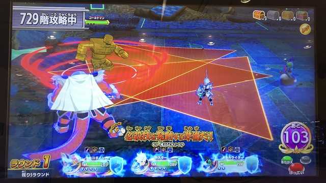 クロスブレイド メイロの時空ダンジョンですが、5弾になってゴールドマンの登場が多くなってます。 これまでの登場の様子をまとめてみました。 15 ラダトームのつるぎ 32 カールの盾 48 ラダトームの盾 52 ステテコパンツ 70 アバンの書 102 ロトのつるぎ 128 ロトのつるぎ 144 ロトの盾 153 ロトの盾 160 ロトのつるぎ 178 ロトのつるぎ 181 ロトの盾 315 ロトの盾 325 ベンガーナの剣 416 カールの盾 462 ロトのつるぎ 489 みかがみの盾 504 竜の騎士のしずく 509 ステテコパンツ 522 ロトの盾 567 ラダトームの盾 ↓ここから5弾 586 竜の騎士のしずく 593 ベンガーナの剣 617 ロトのつるぎ 618 ステテコパンツ 622 ラダトームの盾 654 ロトの盾 687 みかがみの盾 688 アバンの書 691 ヘルズクロー 697 ロトのつるぎ 708 ロトの盾 712 カールの盾 724 竜の騎士のしずく 729 ロトのつるぎ 733 ラダトームのつるぎ 742 ロトのつるぎ 748 ラダトームの盾 754 獣王のマント 756 ロトのつるぎ 761 ロトのつるぎ 781 竜魔人の盾 784 ラダトームの盾 788 獣王のマント 4弾は580階までで、5弾は581階~800階の220階分となっていますが、4弾はゴールドマンが21回(3.6%)なのに対し、5弾は23回(10.5%)ですから、これはもう出血ダイサービスと言っていいのでは? ていうか、201階~300階の間に1回もゴールドマンが出て来ないこともあって、100階やっても(20回プレイで2000円)虹箱平均4個弱というのは流石にまずいと判断したのでしょう。 あとは・・・今のこのメイロの時空ダンジョンは7月21日までとなってますが、7月22日からは超越魔王の装備もバンバン取れるようにしてくれたら、そしてゴールドマンも出てくるときは1体ってだけじゃなく、運が良ければ2体だったり3体だったり(虹箱複数ゲット)というように変えてくれたらこれまで以上に楽しんでプレイ出来るんだけどね・・・。