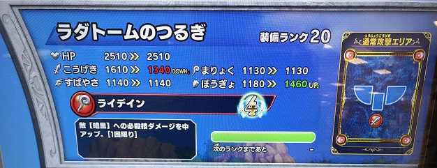 クロスブレイド昨日は時間が足りなくて装備ランクMAXに出来なかったアイテムですが・・・ラダトームのつるぎが装備ランクMAXになりました!必殺ダメージ中アップはいいけど、こうげき値をそこまで下げる必要ないんじゃない? これでロト装備やラダトーム装備をランクMAXにしたわけですが・・・そのあとは夜8時までずーっと強敵ボス・ザムザ戦をやってました。だってしょうがないじゃない?スコアタでハイスコア更新が出来る秘策を思いついたからなんです!で、更新出来たかについては、明日のデイリーランキング公開にて・・・なんだか自分でも、高いスコアが出た気がするんですが、写真を撮り忘れたので記憶が曖昧です(^^;)。でもって明日もザムザ戦やります。なーーーんでか!?それはね、アレがあとひとつで装備ランクMAXになるから~~オーレー!(笑)