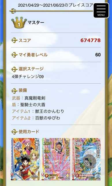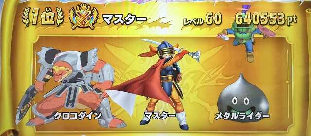 クロスブレイド弾別1位になったものの、誰かに抜かれると思ってて、それでも最終日にメタルライダーに会心が出てハイスコア更新が出来たこともあって・・・4弾王者になることが出来ました!信じられないという思いしかないですね・・・スキャバトの日本最強で優勝したときと同じで(^^;)。2位には2弾王者のキヨタンさん、3位には3弾王者のリゼクトさん・・・すごいランキングですね。さて、「王者」となった以上、8月の関東大会は行く責任があると思いますが・・・飛行機に乗らなければならないのがねぇ・・・市村さん、陸路で行くので旅費とホテル代をポケットマネーからお願いします!(^^) ところで本日は5弾稼働日でした。マイ勇者のレベルが動かなかったのは一番ビックリですが、これでやはり10弾でクロブレが終わることを確信したというか・・・5弾のあとは!新1弾=レベル70新2弾=レベル80新3弾=レベル90新4弾=レベル99新5弾(最終弾)=レベル99でしょうね。で、なぜ10弾で終わりかというと、ポータブルアドベンチャーに「10個のQRコード」しかないって言うからですが・・・どうでしょうね。 連コは結局12パ・・・いや、なんでもないですが(笑)、シクレはマトリフとダイが2枚でゲマは出ませんでした。ゲマ・・・日本最強が懐かしい・・・かっしーですよね、ゲマは(^^)。また、パラレルはポップとザムザは出たけど、あとパラレルは何があるの?公式も、パラレルまでちゃんとリストに載せなさいよ! 新スリーブも5セット買いましたけどね、もうガックリというか・・・2:経験値25005:経験値25007:ちいさなメダル8:経験値25002はダブってスキャン出来ず・・・ダブったらスキャン出来ないってそれもおかしいだろ!運営!あとの4種でなんだろうと思うも、8種ランダムっていうなら、中味も8種バラバラにしろよ!運営! ということで、明日からは時空を誘うためにストーリーを覗いてから強敵ボス・ミストバーンに行って「バーンの鍵」を7月1日までに集めなければ。