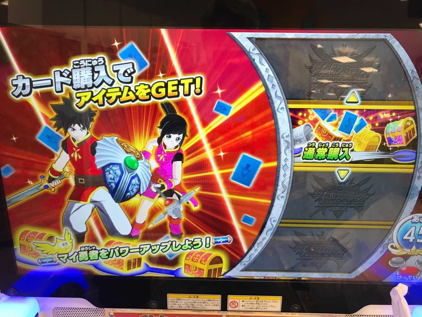 クロスブレイド私もいろいろツイッターを読んでて分かったんですが、「ジャンプビクトリーカーニバル2021TVアドベンチャー」関連で『トレジャーBOX』が抽選で30000名に当たるんですが、そのなかにクロブレのSPカードが入っているので応募をお忘れなく(7月15日23:59まで)。 ところで、夏の関東大会の開催場所ですが・・・「東京駅から1時間圏内」みたいな話があるとか。であればこれはもう葛飾にあるタカトミの社屋でやるのでは?(東京駅から電車使って1時間弱くらい)スキャバトみたいにどこかのゲーセンでやるのかなとも思っていましたが、それなりの人数を集めて行うイベントですし、またこのコロナ禍においてはゲーセンに負担をかける訳にも行かないので、自社のでかい会議室かホール(あると思いますが)でやるのではないかと。その昔参加した頭文字Dの全国大会や恐竜キングの全国大会を、当時羽田にあったSEGAの本社で行ったこともあるし、それと同じなんじゃないかなあ。 で、装備もMAXだし、やることもないけど、とりあえず筐体に向かって100円玉をチャリン!チャレ09にメタスラが来ないので、仕方なく時空ダンジョンへ。そんなことを繰り返すこと3回。5弾になったらこのダンジョンの何階かでVの主人公の衣装がもらえるのかな。125階クリアでもらえるなら既にゲットとなるはずだし、装備も150階や200階でもらえるならプレイする必要がないけど、「今現在の階から25階進んだら衣装、50階進んだら装備」みたいになったらヤダねったらヤダね(^^;)。