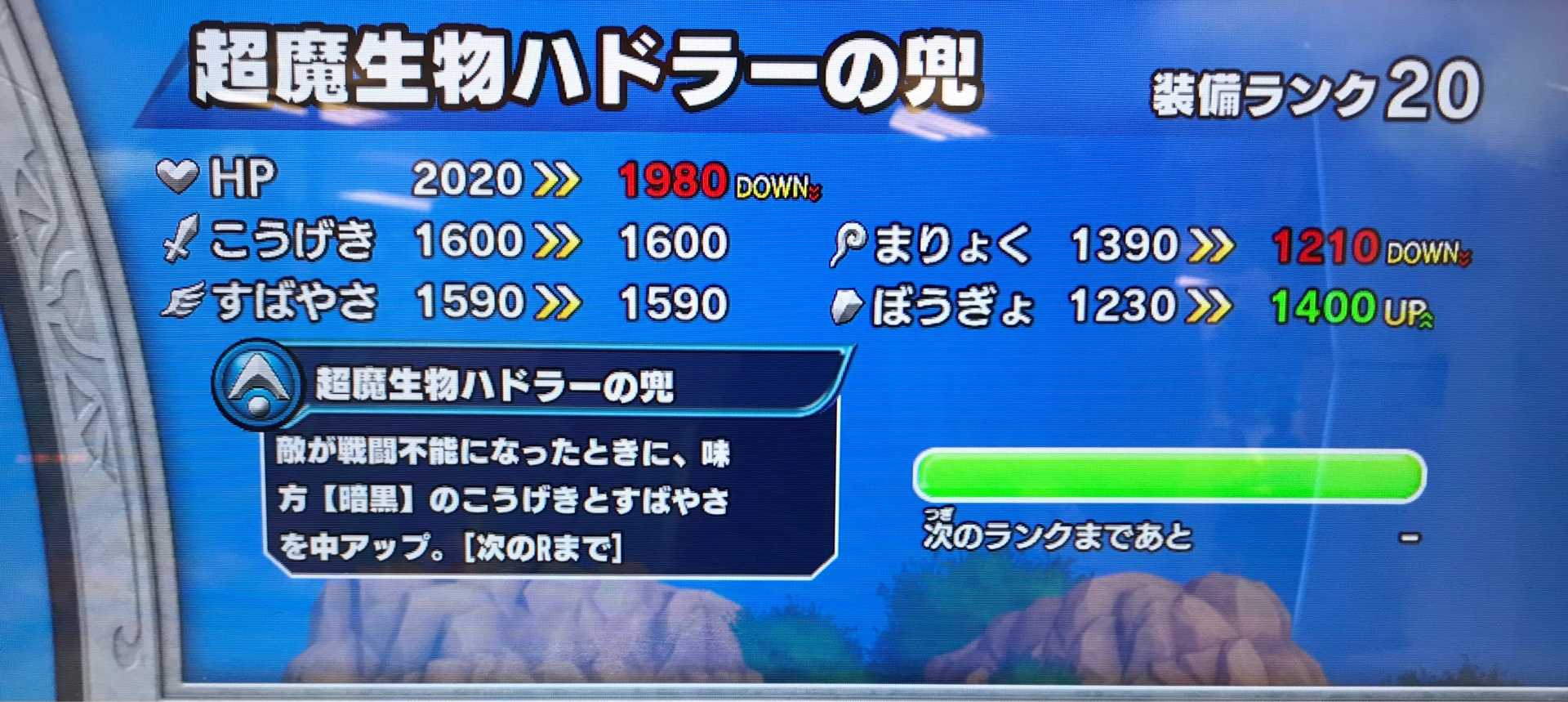 クロスブレイド超魔生物ハドラーの兜も装備ランクMAXになりました!あとは、やっと開放されたつまらな〜いストーリーやって撤収ですね笑。