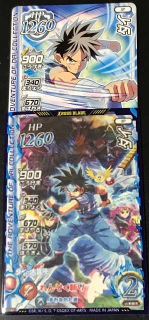 クロスブレイドいやあ、マルシカクさんのツイッターを拝見してビックリしました。あのRTキャンペーンカードとまるっきり同じステのカードがSPカードとして普通に世に出ていたなんて!これはイズさんも驚きだったようで(^^;)。あのクロブレが始まる時、『勇者育成キャンペーン』で「おためし冒険の書」と一緒にもらえたダイのカードが「それ」だったんですね。RTキャンペーンカード以外は、大会参加賞を除いて所持しているため、そのSPカードは持っていることになんかすごく安心した私です(笑)。 で、RTキャンペーンカードは例によって画像をコピーして適当なカードに重ねてスリーブにいれて「持ってるもんね~」的な気分に浸っていたんですが、ここで「何のカードに重ねていたっけ?」と確認してビックリ!なんと私、そのRTキャンペーンカードと同じステのSPカードを無意識に挟んでいたわけで(驚)。 てことで、なぁ~んだ!となったわけで、代用品があるならもはやRTキャンペーンカードに関しては騒ぎ立てる必要が無くなりました(と同時に高額で買おうという気持ちもすっかり消え失せて ^^)。上でも言いましたが、こういうのは持ってる気分が大事・・・気分なの~気分が大事♪ さあて週末です。いろいろ仕上げるぞ~!