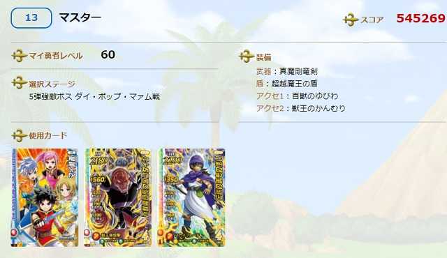 クロスブレイド今日はこちら北海道で初めてのスコアタ大会がありました。先着30人の枠に入らなければと、お店の開店1時間半前に行きましたが(昔ムシキングなら3時間前は当たり前!)、結局人は集まらず、私は「1番」にエントリーして結果的に『無抽選』でした。無抽選の場合、エントリー順にプレイというのが公式ルールなので、私、トップバッターでプレイしましたが・・・流行の兆しが見えている属性で攻めて・・・なんと優勝となりました。これで・・・ドラクエ3部作・・・バトルロード(2009.12.27)、スキャバト(2019.12.15)そしてクロブレで『個人優勝』出来てドラクエ3冠となりました!(過去の優勝記事もご覧ください。私の写真も! ^^)スキャバトチームゴッドのルリさんが2位でワンツーのほか、バトルロードの師匠であるTさんが4位入賞でしたが、次回8月の大会は順位が大きく変動する予感がします。 そして昨日ランク15まで上げていた魔影装備ですが、今日は一気にランク上げです。魔影のゆびわ&デッド・アーマーの兜が装備ランクMAXになりました!これらの装備はもうこの先しばらくは「必携装備」になるんじゃないでしょうか。でもって、このごろ流行りの装備ということで・・・魔影の装備ランクオールMAXのステはこんな感じです。クロムさんのデイリー1位の装備を参考にさせていただきました(クロムさん、デイリー1位、そしてチャレ09を抜いての弾別1位おめでとうございます! ^^)。そしてスコアタもやってみましたら一発で・・・およよ!もう少し突き詰めれば私もチャレ09を抜かすことが出来るかな? 31日の強敵ボス登場までやることが無くなったので、明日はスコアタを少しだけやって、あとはオリンピック観戦をしたいと思います(今日開放予定のステージどうなった?)。