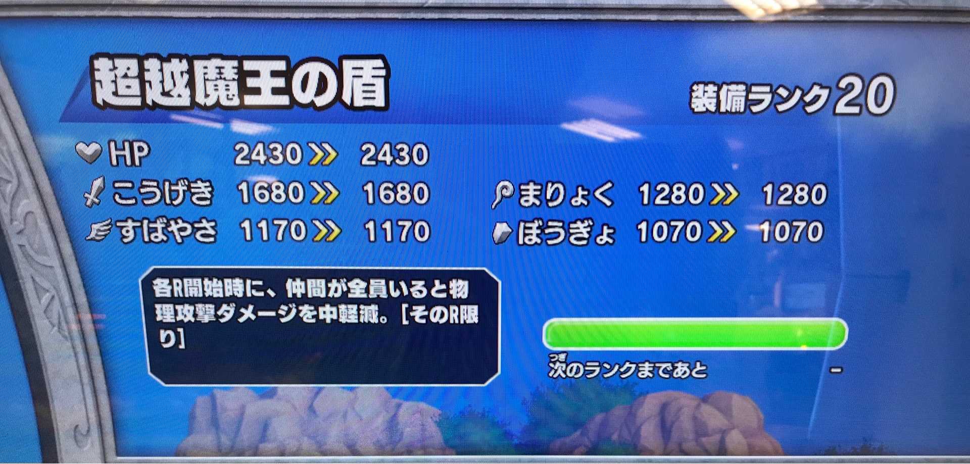 クロスブレイド札幌もまたマンボウが・・・もう人を見ないで数字だけ見てる感じですね。来月22日に「解除か延長か」みたいな感じで首都圏や関西圏の知事がTVに登場するとあって、北海道のトップも一緒に出たいんでしょうね。 さて、今日の装備ランクの話をする前に・・・いま、虹色アクセサリーって、45個+獣王のかんむりで46個あるんですが・・・中学生以下で、親が代打ちしてるってことじゃなく、ちゃんと中学生以下が普段プレイしているという人の中で、このアクセサリーが「10個以上」「装備ランクMAX」だって人、どれくらいいますかね。5人いないんじゃないかな?そんなんでいいのかな・・・クロブレって一応キッズゲームでしょ?普通、装備ランク20がMAXだって分かったら、20回ドロップしたらMAXになれるんだって思うでしょ?運営さん、ドロップ35回でMAXも大変だけど、ドロップ70回でMAXっていうのは見直し必須だと思うよ。ちなみに私は、あと「六星のレリーフ」を3個取ればMAXになるんですが、今日取ってしまえば、明日やることが無くなるので、明日のお楽しみってことでヤメにしました(^^)。 今日はちょっとだけ、今週末に行われる店舗大会(スコアタ)の練習もしましたが手応えはありました。あとは先着30人の枠に入ることと、大会に参加できる16人の枠に入ることが大事ですね。そして夏の関東大会の練習も・・・これは来月になってからでいいかな。 さて、超越魔王の盾ですが、装備ランク10になりました。まだランクMAXまでにはありますが、早く仕上げたいですし、22日が楽しみです(^^)。