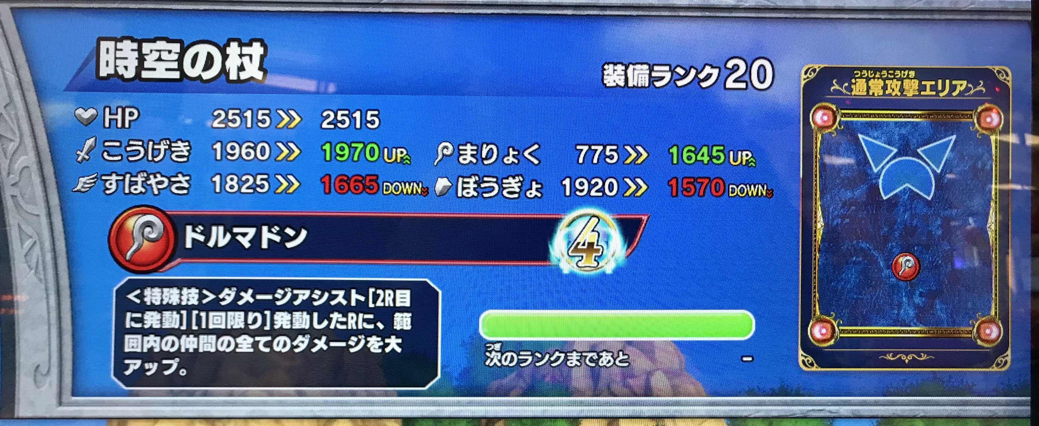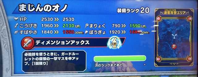 クロスブレイド今日は店舗スコアタ大会がありましたが、チームゴッドのルリルナさんが16連打&15連打で47万5千点台を出して優勝、私が15連打&16連打の47万3千点台で2位でした。同じく「片方16連打」でも、1戦目に16連打が出たほうがスコアは高いですね。ルリルナさん、おめでとうございます!(^^) そして今日から始まった「怒れる闇竜杯」ですが、やはりアクセが2つということで比較的早く終わりました。改めてツメからですが・・・↑スコアタデッキ(あくまのツメ、魔剣士の盾、魔影のゆびわ、デッド・アーマーの兜)での比較です。 ↓ここからは光デッキ(パパスのつるぎ、魔剣士の盾、光のゆびわ、キルバーンのローブ)での比較です。竜神王のツメ、えいえんの盾、しゅくふくのかぶと、おうじゃのブーツが装備ランクMAXになりました。えいえんの盾が魔剣士の盾より攻撃力が高くなれば使えたのに・・・ あとは破邪の腕輪がランク16になりましたが、今日開放されたステージの画面にあと4つ未開放のステージがありますので、それが開けば腕輪もMAXです。ところで今日、筐体の画面にポップのトーナメントの予告がありませんでした。ポップ無しで真4弾になるのかも知れませんね。