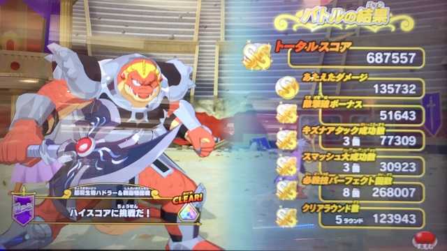 クロスブレイド本日は店舗スコアタ大会がありました。関東ではエリア大会が開催されているので、「もしもエリアに参加していたら」という気分で、決勝に進出できるスコアを出したいと思っていたんですが・・・ 1戦目、ぶっ飛ばしもなんか調子悪いなと思ったら、敵3体がビミョーにソーシャルディスタンス取っちゃって、危うくゴーストが3体にかからないところでしたが、0.5ミリひっかけて連打・・・うまく16連打出たものの、ここでスマッシュは痛恨のグッド!2戦目は何事もなく、16連打からのパーフェクト攻撃でしたがマイ勇者のツメもミス多め?って感じで46万ちょっとというスコアに終わってしまいました。結局5位で賞状はもらえず、これじゃあ関東大会に参加していても決勝に進出出来なかったですね。なんか最近、スマッシュの判定が変にきつくなった気がしてるんですが(反対にガードはパーフェクト出やすくなった?)、いずれにしても日々目がショボショボしてきてる私にスマッシュと必殺は鬼門です(^^;)。 筐体のバージョンが「1.09.00」になって真4弾の準備がされるなか、終盤となった真3弾で腕輪の装備ランク上げも第3コーナーを回ったか・・・あと新ストーリー開放が9日、16日、23日に予定されていて各日ステージふたつずつ開放でしょうし、それで装備ランクはMAXになるはずです。