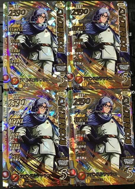 クロスブレイドこれまで4回、2人対戦の店舗大会がありましたが、一度も優勝してない私。これまでアバンパーティを含め、いくつかのデッキを試してきたもののいつも空振り。何か視点を変えた、皆の意表を突くデッキは出来ないものか・・・ 昨日装備ランクMAXにした「竜神王のツメ」の攻撃力の高さ、素早さの高さを見てて・・・「そうだ!今までマイ勇者を切り札にしたことは無かったけど、これならなんとかなるかも!」思いついたのは超竜速攻です。マイ勇者は「竜神王のツメ」「竜魔人の盾」「超竜のゆびわ」「魔法の闘衣のかんむり」。そして「グレイトドラゴン」「バラン」「ドラゴン+3」で切り札がマイ勇者。大会は・・・なんとか2戦勝って(初戦はシード)、2人対戦初優勝となりました(^^)。最初のぶっ飛ばしで勝って、すぐさまグレイトドラゴンを切り札マイ勇者と交代させ、ツメのスキルで全員闘気MAXになりますからキズナ必殺発動です。決勝ではキズナ必殺に対し、お相手のヒュンケルの効果で「つば競り」もありましたが、こちらのマイ勇者に代わった素早さは2000オーバーになってますので(ドラゴンの素早さブーストが頼もしい!)跳ね返してお相手のアバンパーティをワンターンキルにて倒すことが出来ました。寝ないでデッキ考えましたが、昨日ツメをMAXにしておいて良かったかな。パーティーや装備も、キズナ必殺で削れなかった場合のその後の戦いを意識したものになっていて、自画自賛ですが、割といい感じに仕上がっていると思います(^^;)。