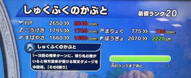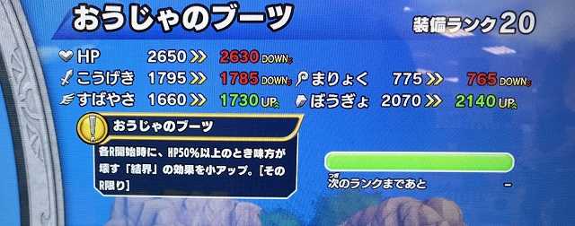 竜神王のツメ、えいえんの盾、しゅくふくのかぶと、おうじゃのブーツが装備ランクMAX になりました。