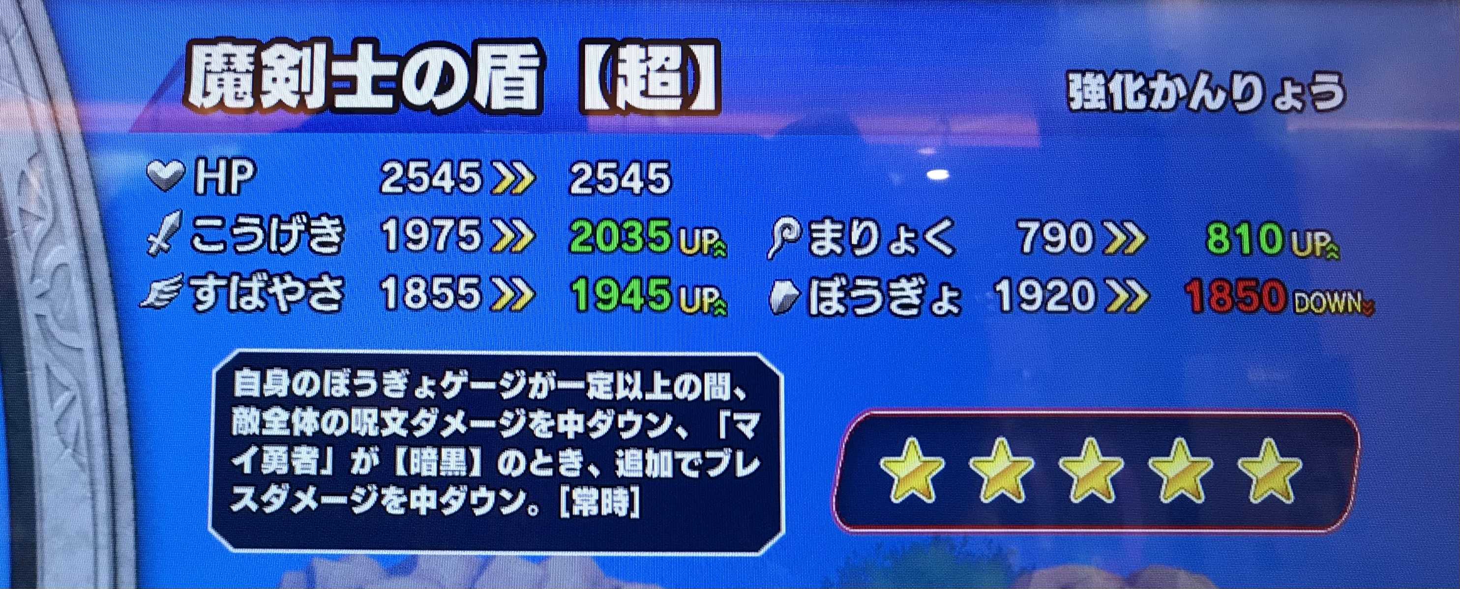 普段使いの盾は魔剣士の盾【超】に変更ですね。