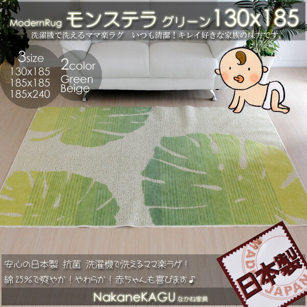 ..【56%OFF】【送料無料】最安挑戦!ウォッシャブルラグ130x185モンステラグリーン'【送料無料】●洗濯機で洗える♪清潔ママ楽ラグ●130x185グリーン●モンステラカーペット★ho【あす楽対応】【smtb-TK】【10P23oct10】【5P23oct10】【2P23oct10】送料は、北海道・本州・四国・九州は無料、沖縄¥1470 です。代引きは送料+315円必要です。※離島への中継料金は事前にお問合せ下さい。 0564-22-2144 rakuten@rug.jp他のサイ ...