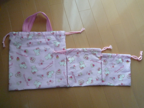 幼稚園準備、大詰めです。袋物作成は、3つでした。少ない方かな?載せるほどのものではないけど、高校の授業以来のハンドメイドなので、記念に(笑)購入でもよいとのことだったけど、17cmとか19cmとか細かく指定されてて探す方が面倒そうだったので作りました。それにネイが、前に穴のあいたズボンをひいばあちゃんにハートのアップリケで直してもらったのを、今も「ひいばあちゃんが作ってくれたハート~」と喜んでるので、作ったほうが喜ぶかなぁと。できあがったのを見せたら、「これ持っておでかけする~」と出て行こうとしてました余裕があったらお弁当入れも作ろうかと思ったけど、まだ名前付けや制服の補正もあるから、それが終わってからかな。肩詰めとか、やり方がよくわからん名前付けは、持ち物全て(クレヨン1本1本まで)というのに気が遠くなったので、こちらを購入。お名前スタンプ おなまえスタンプ 豪華23点セット!お名前付けの必需品★超可愛いセット/マルチスタンプ付きひらがな・漢字・ローマ字に変更できる お名前はんこお名前スタンプ おなまえスタンプ テレビ出演【お子様の 入園 入学 準備 お名前 付けの定番 】 キューティーネームスタンプ スタンダード・豪華23点セット お名前はんこ お名前シール 付き 【楽ギフ_包装選択】10P19Mar12これがあるとかなり楽だし、布に名前を書くと私の字じゃ汚く見えるので(笑)、良かったです。漢字もあるので、長く使えそう一時保育と、お隣さんが見兼ねたのか(苦笑)時々ネイを預かってくれたので、幼稚園準備もようやく八割方終わりました一方、コウは6ヶ月になったので、離乳食開始。この子は、何となく食べそうだな~と思ってたけど、…やっぱり食いしん坊でした今まで母乳以外何も与えたことがなく、当然スプーンも初めて(Kシロップくらい)だったけど、初日からパクッ、ゴクン、2日目以降は自分でスプーンを握り締めてチューチュー吸ってました開始1週間で、十倍粥は子ども茶碗半分以上ペロリ。ネイは食べなくて苦労したけど、コウは食べ過ぎに注意かもでも、ネイも最近はいろいろ食べられるようになりました揚げ物、特にエビフライが大好きで、親の分まで取り上げて食べてます。野菜は苦手みたいだけど、「なんでもたべナイトの歌、歌ってー」と言われて歌うと、歌に合わせてパクッと食べてくれます。こどもちゃれんじ、時々役に立つそんなネイとの、昨日の夕食の会話。私「ごはん、おいしい?」ネイ「うん、おかあさん、上手上手」ダンナ「何で上から目線なんだ…」時々、ダンナにツッコミ入れられてるネイでした。