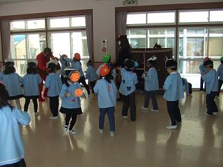 今朝は久々に雪が10センチくらい積もっていて朝は車の上の雪よけと 周りの除雪をしてから出勤しました。。。 今週は朝の1便目のバス当番だったので、 朝仕事をしている時間がなくなるべく早く出勤するようにしていたのですが、 3日間連続でチューブ滑りの引率をしたあとは どーーーーーしても起きられなくて 5分・・・・10分・・・・・・といつもより遅めに起きちゃいました。。。 今日は1日早いけど、 節分の豆まきをしました!子どもたちは数日前から 鬼が来る・・・・とせんせいから聞いていて、「いつ鬼来るの・・・・?」「鬼はおっきい??」などと不安そうに 確認していました。。。 今日もホールに入って、 いつ来るか どこから現れるのか・・・・とかなり表情は硬く せんせいたちが出入りするたびにビクビク。。。 司会のセンセイが紙芝居を読んでくれて、 そのあとは練習していた「オニはうちでひきうけた」 と言う新沢さんの歌を唄い。。。1番を元気よく歌って、 2番を歌い始めた頃に ドン! ドンドン!! ドォ~~~~ン!!! と言う太鼓の音が。。。 その瞬間、 いままで元気に歌っていた子どもたちが一瞬にして凍り付き後ろを振り返った瞬間に オニが!! ギャ~~~~~~!!!!! と言う悲鳴と共に 持っていたマメを懸命にぶつける子 泣いて逃げる子せんせいや物の影に隠れて出てこない子・・・・・・・などその子によって さまざまでした。。。 私たちは 子どもたちが怖がって泣いている姿がおかしくて(←オニ・・?)ゲラゲラと笑いながらも 「ほらっ! マメぶつけておいで!!」と、 わざわざオニの近くまで子どもを連れて行き さらに泣かせ。。。(かなりオニ・・・?)年少さんより 年中の子どもたちのほうが泣いていたのですがコワくてコワくて逃げ回っていた子がわたしのところまで来て 「だっこぉぉぉぉ~~~!!」と泣きわめくので?、 抱っこしながら一緒に豆まきをしました。。。スッゴイ力でしがみついていて、 わたしが両手を離してもビクともしないほどガッシリしがみつき 「怖いよぉ・・・。。 怖いよぉ・・・・」と泣いていました。。。 (かわいいなぁ!)↑ オニはそと~~! ふくはうち~~!!昨年より優しいオニ?だったので、 泣く子も少なかったのですがオニが怖い子にとってはどんなオニでもコワイので、 終始泣きっぱなし。。。 しばらくオニと戦って?、 オニは退散。。。。子どもたちがまきまくったマメをみんなで拾い集め、 それから待ちに待った?マメを食べる時間。。。↑ 美味しいねぇ・・・・うちの園では、 ここ数年は炒り大豆を食べています年の数だけ・・・・・と言う話を一応したけれど、 お腹が痛くならない程度に好きなだけ食べていいよ!・・・ってことで、 みんな大喜びで食べました!いままでオニがいて、 泣いてたことも忘れて。。。 (笑)豆まきには毎年、 盲学校の幼稚部のお友達も参加してくれるのですが今年も一緒に豆まきをして、 豆も一緒に食べました。オニ役は、 盲学校のセンセイと運転手さん (もちろん子どもたちは知りません) 泣いていた子どもたちもだいぶ落ち着いてほとぼりが冷めても まだ「もうオニ来ない・・・?」と何度も聞いていた 3歳クラスのMちゃん。。。普段はニコニコ笑顔のカワイイ子なのですが、 よっぽど怖かったらしく今日1日、 ずぅ~~~っとオニの話をしていました。。。 どの子どもたちも、 本物のオニだと信じて疑っていませんでした。。みんなのこころに福が来て、 幸せになれるといいねこのまま まっすぐ素直なこころで大きくなりますように・・・・。。。 豆まきを楽しんだあとは早めのお弁当を食べて、 また?合奏練習。。今週1週間練習をして、 まだ最後までいっていない木琴グループ。。あと3~4回の練習で最後まで通して弾けるようにならないといけません。。焦りがあるのは相変わらずですが、 それでも少しずつタイミングを覚えたり新しいところも弾けるようになったり・・・・と、 本当に少しずつだけど上達はしているので 来週も頑張りたいと思います。。。 昨日いただいてきた「お菓子のおうち」は、 相変わらず好評で子どもたちはそばを通るたびに立ち止まって眺めたり、 カオを近づけたり。。今日も なめる寸前でわたしが見つけて声をかけた子がいたのですがきっと私たちが見てないところでなめている子もいるのでは・・・・!? 今週は3日連続でチューブ滑りに行ったので、 さすがにキツかったですが今週も無事に終わって ヨカッタです 仕事から帰ったあとは、 母とわたしと 母もわたしも仲良くしてもらっている信者さんと ゴハンを食べに行きました。。。 初めて行く居酒屋さんだったのですが、 美味しかったです中でも 「揚げ納豆腐」という 揚げの中に豆腐と納豆を入れて揚げたメニューはとっても美味しかったぁ~~~ ↑ 揚げ納豆腐たくさん食べておしゃべりして、 楽しかったです 明日は夜 お手入れがある以外は予定がないので た~~っぷり寝たいと思います 「千と千尋の神隠し」相変わらずおもしろいですね~~~ 映画館で初