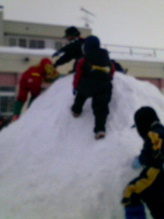 今朝も若干の積雪があり、 朝は園庭の除雪をしました。。。あと1ヶ月もすれば徐々に雪は溶けてくる(ハズ)なんだけど、 もうそろそろうんざり・・・・? 昨日からおこなわれている 「冬まつり」に、 年中と年少の子どもたち合わせて40名を連れて行ってきました今日のイベントの中で 「耐寒ラジオ体操」というのがあり、 これは毎年おこなわれているイベントなんだけど、 今年は参加してみようか・・・・・?と言うことになり、 参加申し込みをして 時間に間に合うように幼稚園を出発しました。。 毎年、 メインになるおおきな雪像があって イベントなんかはそこでおこなわれるんだけど ラジオ体操も そのメイン雪像の前に参加者が並び 代表の人が20人くらい壇上で体操をしていました。。。耐寒ラジオ体操に参加していた団体はけっこう多くて、 全部で700人くらい人がいました~~~本番の10分前には雪像前に集まらなくてはいけなかったのでちいさなすべり台を1回滑って、 雪像前へ。。。年少・年中と並んだら、 となりには近隣の小学校の1・2年生が来ていて卒園児がたくさんいました↑ カワイイ?卒園児たちです・・・あっちからもこっちからも 「ひだまりせんせぇ~~」と声をかけてもらい、 嬉しかったです ↑ 出番待ちの子どもたち・・・・・集合時間に遅れてくる団体もいたので、 少し待たされたけど(文句・・・?)無事にラジオ体操がスタートメイン雪像は上にも登れるので、 わたしは体操が始まる前に上へ登りそこから子どもたちの様子を撮影しました。。。 上から見たら、 どれがうちの子なのか ハッキリ言ってわからなかったけど(笑)一緒に行ったせんせいを目印?にして 撮りました。。。・・・・・だって、 みんな同じようなつなぎを着てるんだもん。。。 ラジオ体操は、 昨日の体操のときにみんなでやってみたし夏休みにも近所の公園などでやっていたラジオ体操に参加していたようなのでどの子も張り切って踊って?いました。。。 ラジオ体操第2までおこなって 終了。。。。 パチパチ~~~参加した団体や一般の人には参加賞があたる・・・・と言うことで、 しっかりといただいてきました!!!主催が、 NHKと郵便局だったので それぞれのキャラクターのシールとタオルをいただきましたけっこう豪華だねぇ。。。。引率したせんせいたちの分もあって、 写真はわたしの参加賞です そのあとは、 年中・年少とクラスごとに別行動をとりました。。。年少は担任と運転手さんで、 年中は担任とわたしでまわりましたが年中クラスは真っ先にメインすべり台へ。。。。どのくらいの長さがあるのかは定かじゃないのですが、 かなり長くてしかも氷なので よぉーーーく滑ります。。。 (かなりのスピード・・・)子どもたちは恐がりもせず、 むしろ?大喜びで滑っていましたそのあとは、 偶然会場でお会いした 写真屋さんに集合写真を撮ってもらい、 いろんな雪像を見たり ちいさなすべり台をしたり。。。↑ なにかわかるかな・・・?駐車場の関係で11時半まで・・・・・と言う限られた時間だったけど子どもたちはとっても楽しめたようです。。。。 わたしも、 冬まつりの引率はかなり久々だったのですがつかの間の息抜きになり?、 とても楽しかったです・・・・・・・私たちが出かけていた間、 年長さんは・・・・・・・・と言うと。。。グループごとに合奏の練習をおこない、 わたしのグループは担任が見てくれて練習をしたそうです。。。 みんなであわせることはしなかったみたい。。。火曜日、 総練習はどうなるのでしょうか・・・・。。。 やはり園外保育に出かけると疲労度も倍になり、 しかも寒さの中で出かけるので午後には睡魔が。。。 午後はバス当番だったのですが、 危うく心地よい眠りについてしまうところでしたーーー また来年も行けたらいいなぁ。。。。 今日の午後、 まだお楽しみ会も終わってないのに 卒園式の話になり入場と退場の曲、 そして卒園児だけが歌う唄も決めました。。。うちは、 入・退場はすべてピアノで弾いていて そろそろ練習をしなくてはいけない時期なので決めたのですが、 退場は今年も 「銀波」に決定。。。 去年の卒園式にも銀波を弾き、 銀波はもう何年も続けて弾いているのでおそらく 少し弾けば思い出す・・・・と思われるのですが、 ・・・・どうかな?入場はいろいろ候補が挙がったけど、 決定するところまではいきませんでした。・・・・担任が希望する曲があればそれでいいんだけど。。。 お楽しみ会が終わったら、 銀波の練習も少しずつしていこう・・・と思っています。 明日からは3連休 ヤッホォ~~~イ とりあえず、 寝だめをして (どんだけ寝るんだ・・・?)あとはピアノの練習や買い物などをして 過ごしたいと思っています。。。