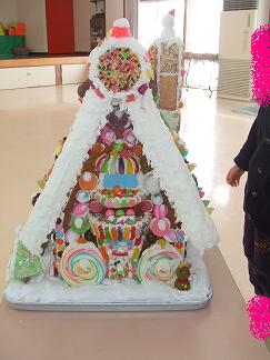 今朝は、 筋肉痛の部分がまた増えて さらにガチガチのからだ。。普段の運動不足がたたっています。。。 (ナゼか)脇腹と二の腕、 足のすべてが痛くて 歩き方もロボットのようになっています。。。 今日から2月!年が明けてからもう1ヶ月も経つのかぁ~~~。。。あっという間だったなぁ。2月も28日しかないし、 3月だって保育日数も少ないから きっと今年度もあっという間だろうなぁ。。。。 ちなみに。。。。卒園式(3月16日)までは、 あと30日です。。。 (土・日は含まず)まだそんなに卒園・進級の雰囲気はないけれど、 年長の子どもたちともあと少しなんだなぁ。。。 今日の午前中。。。幼稚園にあるものが届きました。。。。 ・・・・・正確には取りに行ったのですが。 その正体はこれ。。。。↓ ↓ ↓↑ これなんだろう・・・・ 市内のとあるレストランで展示されていた 「お菓子のおうち」です。。園長せんせいがそこのレストランの店長さんと友人同士で、 もしよかったら・・・と言う話があったらしく、 昨日まで展示されていたものを2ついただいてきました比較的、 お楽しみ会の練習に余裕?のある年少クラスが取りに行ってくれたのですが 帰ってきてホールに置いてから みんなで大騒ぎ。。。 「わたし まだ見てない!」だの「○○ちゃん、 見えないからどけて~~!」だの・・・・・。。。 なんだかんだと言い合ってました 今日いただけることは事前にわかっていたので、 朝の体操のときに壊れやすいから触ってはいけないということと ずーっと飾ってあったものだから食べるとお腹が痛くなるかもしれないので食べてはいけない・・・ということを子どもたちには伝えておきました。。。 しかし。。。実際にお菓子のおうちを目の前にすると お菓子のいいニオイもするし普段おやつで食べているような身近なお菓子がぎっしりと詰まっていて大人のわたしでも触りたくなるようなおうちでした。。。 ↑ こちら側が玄関になってまーすたくさんのアメやチョコレート、 ビスケットなどを使っていて 周りは砂糖で固められていました。。↑ 美味しそぉ~~~・・・ 年少クラスの子どもたちは戻ってきてからずぅーっと、 飽きもせずにみてましたが大騒ぎの中でKくんが 思わずペロ・・・・っとなめたところを目撃してしまい。。。 あーーーーーーー!!!! ・・・・・・・と、 周りで騒いだら挙動不審になり “K食べてないよ”・・・とひたすら弁解していましたが、 誘導尋問?のような聞き方をしたら あっさりと 「甘かったぁ~~~~」 って言ってました なめたり触ったりしたい気持ちもよーーくわかるので、 別に怒ることもなく責めてもいませんが、 Kくんの反応がちょっぴりおかしかったです・・・ その後、 年長の合奏練習の時間になり 年長の子どもたちがおりてきたのですが お菓子の家に気付いてそっちへ一直線コラー! 練習はどうなったんだ~~!!おおきなおおきなお菓子のおうちに釘付けで、 なかなか練習どころではありませんでした。。。 ↑ 食べたいねぇ~~ しばらく練習をしないで見せてましたが、 さすがに練習しないとマズイのでお菓子のおうちの見学もほどほどに 練習スタート!! だいぶ進んではいますが、 イマイチうまく弾けない子が多くて 子どもたちも教えているわたしも苦戦中です。。。 毎日根気よく、 できるようになるまで練習するのがいちばんなんだけどずっとやっているのも子どもたちが疲れるし かといって練習しないワケにはいかないので、 子どもたちがやる気になれるようなコトバがけを意識して練習をしています。。。 フレーズが変わって新しいところになると、 途端に不安になる子も多くそんなときにはそばについて一緒にやってみたり、 できるようになったら大げさ・・・?ってくらい褒めまくったり。。。 ・・・・・・・・・・・・・明日も頑張ります 明日は1日早いけど、 節分の豆まきをします“鬼”を怖がっている子どもたちがたくさんいたので、 どれだけの子が泣くか楽しみです・・・・・・・・(←せんせいたちがいちばん鬼!?)