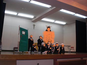 先ほど、 昨日の日記も更新しました~~ 今日で今週もおしまい!ホント、 1週間があっという間だな~。。。 今日も朝は外遊び!今日はわたしとバスに乗っているせんせい以外のせんせいは、全員外へ出てしまったので園内にはわたし1人。。。でも子どもたちもほとんど外へ出ているので、なーんもすることがなくて ひたすら文集のページを折ってました。。。 今日の体操後も年少クラスと練習!今日は歌&踊りの練習をしたんだけど、担任がピアノに慣れるために わたしが踊りを担当!!子どもたちのほうがだいぶ覚えてきてせんせいのほうが間違っちゃったりしてますがまだ踊りと歌という2つのことができない子も多く踊りに集中したら歌が聞こえなくなったりまたはその反対だったり。。。練習しかないと思うんだけど、 年少だからね~~。。。そんなに完璧!・・・にやる必要はないかな? 年長さんがおりてきたので合奏練習。。。最近はこのパターンが定着しております。。。 (o ̄ー ̄o) ムフフ 今日も40分くらいグループごとに練習をして、11時くらいからホールであわせてみました!昨日よりもみんなの息があってきてウーン いい感じ~~~♪ 子どもたちもほかのグループとあわせることによって曲の感じをつかむことができてイイようです。。。来週もがんばろ~! 年少クラスは、今日は10時半すぎからごはんを食べ始めていてわたしは合奏練習が終わったあと 急いで流し込み?11時半からホールで劇の練習!! (あぁ忙しや・・・・) 今日は昨日練習した部分を確認のためにやってみて、そのあとの部分も練習しました!わたしは役割以外にも ナレーターもするので(担任と半分ずつ)紙を見ながらやってますがさすがにセリフは紙を見れないので やっぱ覚えないとね。。。 ( ̄ー ̄; 今日は担任のせんせいが演じる役が出てくる部分もやったけど、(本番の週くらいには なんの劇か・・・を書きますネ)完全に“役”に入りきっているので かなりウケます。。。 (笑)ナレーターはステージの下でおこなうのですが見ていて噴き出しそうです。。。 プー!(*≧m≦)=3 今日は30分以上練習できたので 良かったです♪また来週以降も 劇練習に力を入れる予定です! 今日は金曜日なので、 給食注文やらお金の計算やら・・・の日。こういう日は、帰りの2便目のバスはキツイなぁ~・・・・と思ったりします。。。(まぁ5~6週に1回くらいだからガマンなんだけどね・・・) お楽しみ会のプログラムやら その他やること盛りだくさんですが、それは来週以降頑張ることにして(?)5時半くらいには帰ってきました。。。 明日・あさってはお休みなので ゆっくりします~